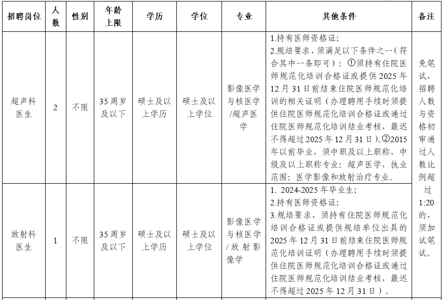 3.根據(jù)綜合成績(jī)從高到低的順序按招聘崗位數(shù)進(jìn)行擬錄用。綜合成績(jī)并列的,按面試成績(jī)排序;招聘崗位按照1:3人數(shù)比例進(jìn)行開考,參考人數(shù)不足1:3比例時(shí),若該崗位為醫(yī)院緊缺崗位,可正常開展,普通參考人員綜合成績(jī)須達(dá)到60分合格,免筆試參考人員綜合成績(jī)須達(dá)80分合格。
