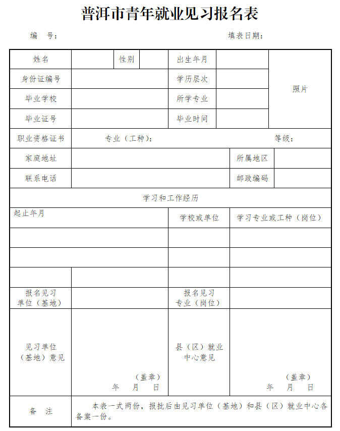 3.附件:《普洱市青年就業(yè)見習(xí)報(bào)名表》