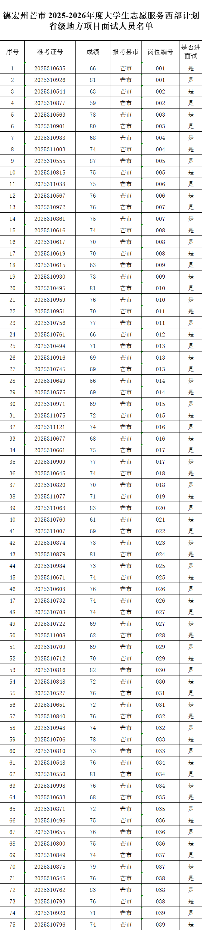 附件1:德宏州芒市2025--2026年度大學(xué)生志愿服務(wù)西部計(jì)劃省級地方項(xiàng)目面試人員名單