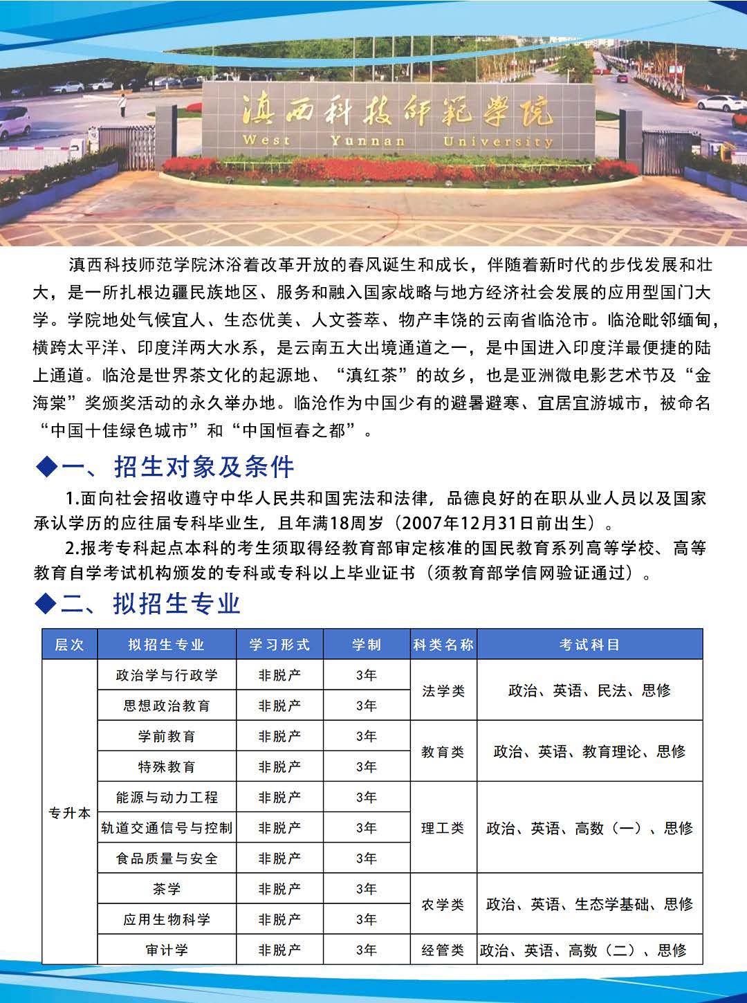 2025年滇西科技師范學(xué)院高等學(xué)歷繼續(xù)教育招生簡(jiǎn)章