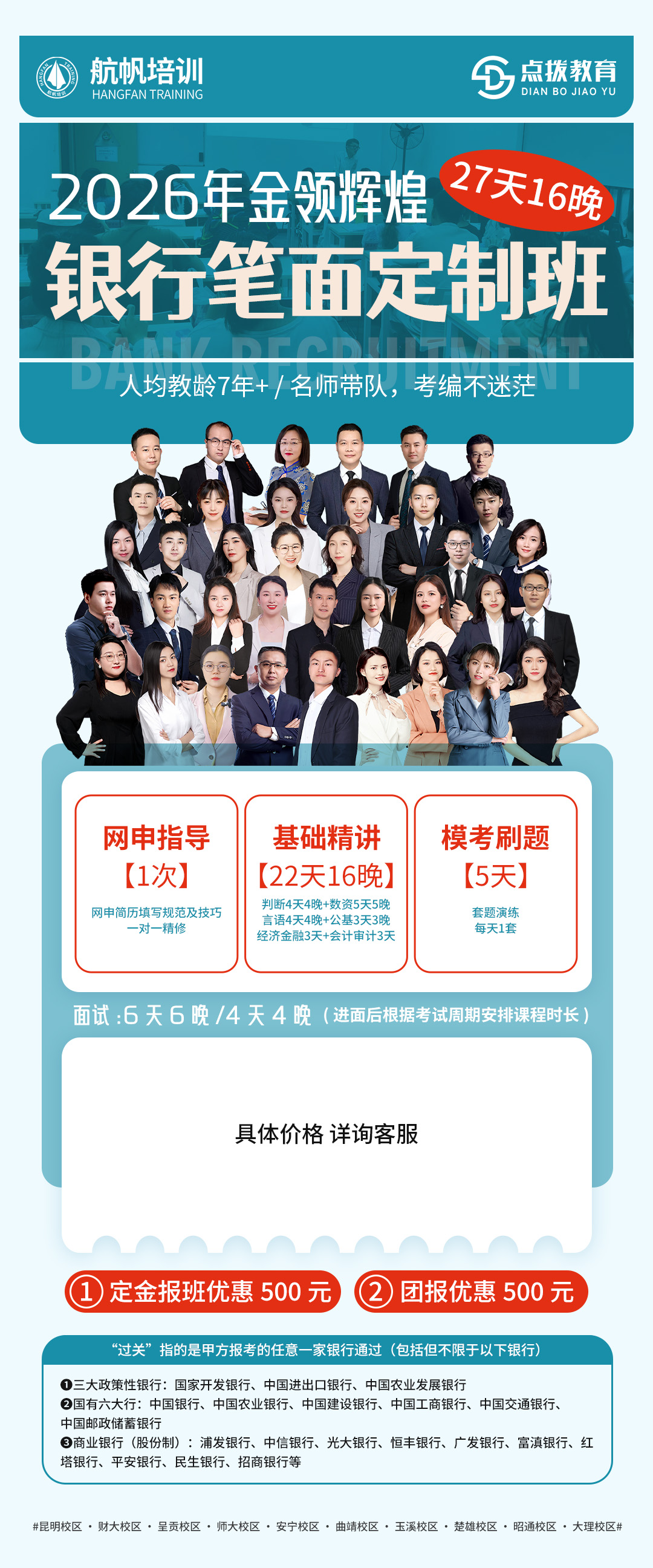 2026年金領(lǐng)輝煌銀行筆面定制班