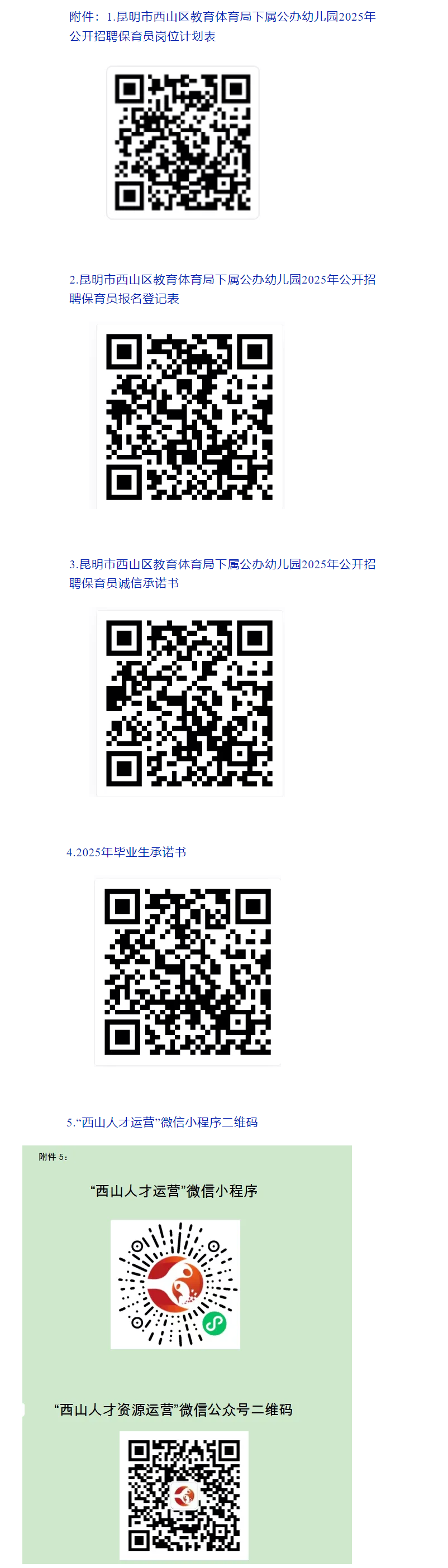 1.昆明市西山區(qū)教育體育局下屬公辦幼兒園2025年公開(kāi)招聘保育員50人(具體崗位詳見(jiàn)附件1)。