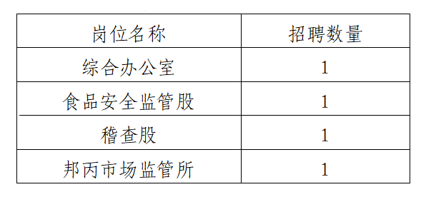 雙江自治縣市場(chǎng)監(jiān)管局公益性崗位4名。