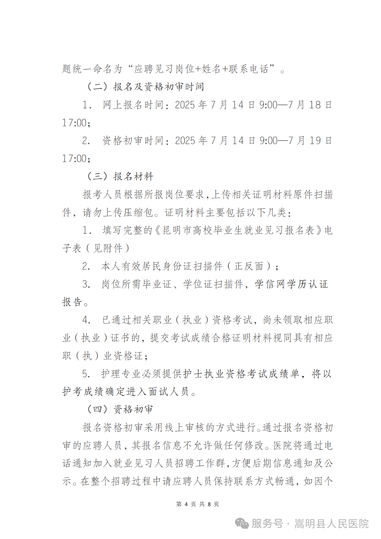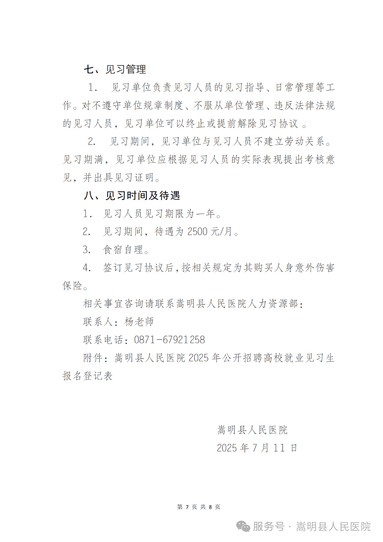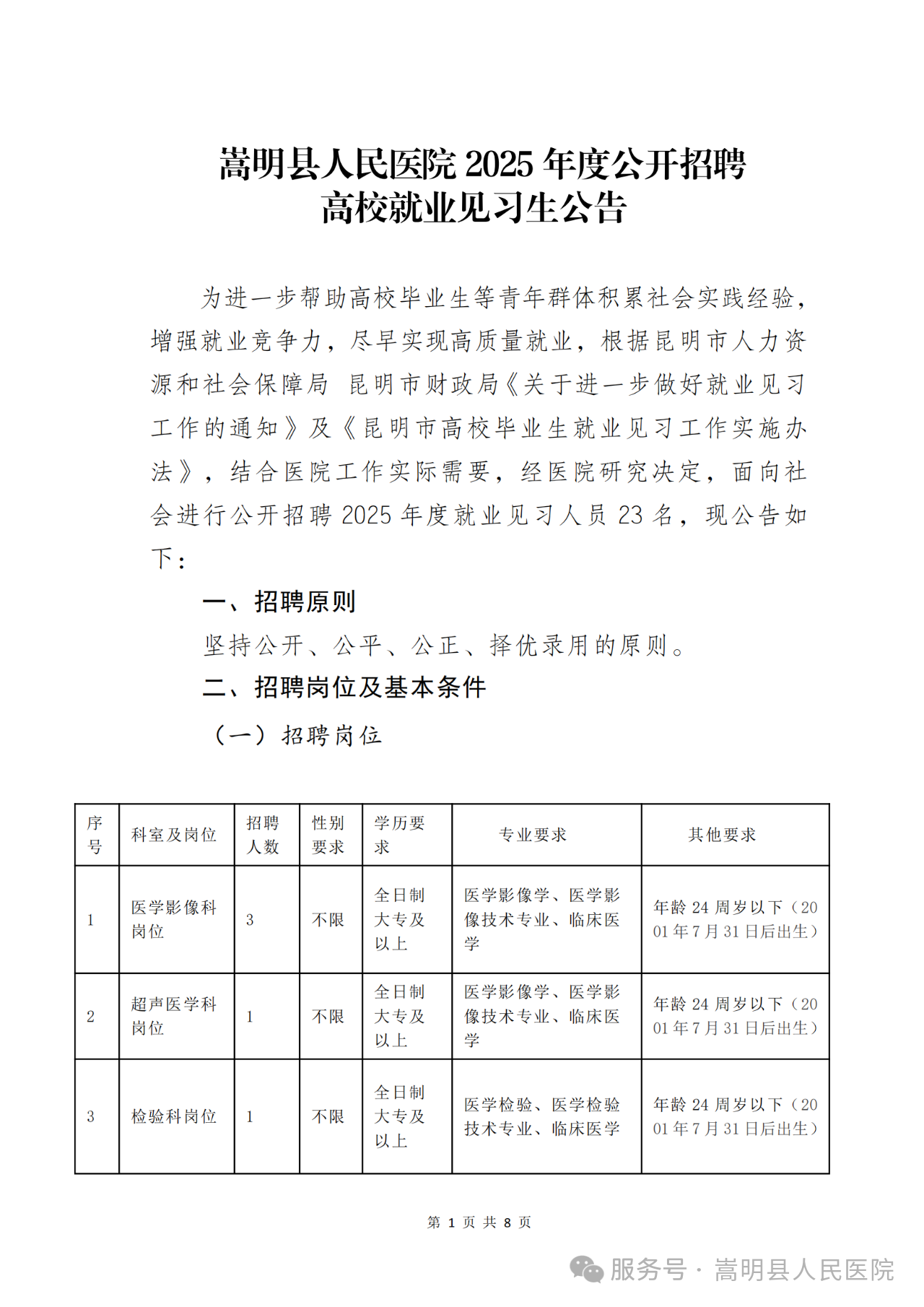 嵩明縣人民醫(yī)院2025年度公開招聘高校就業(yè)見習生公告