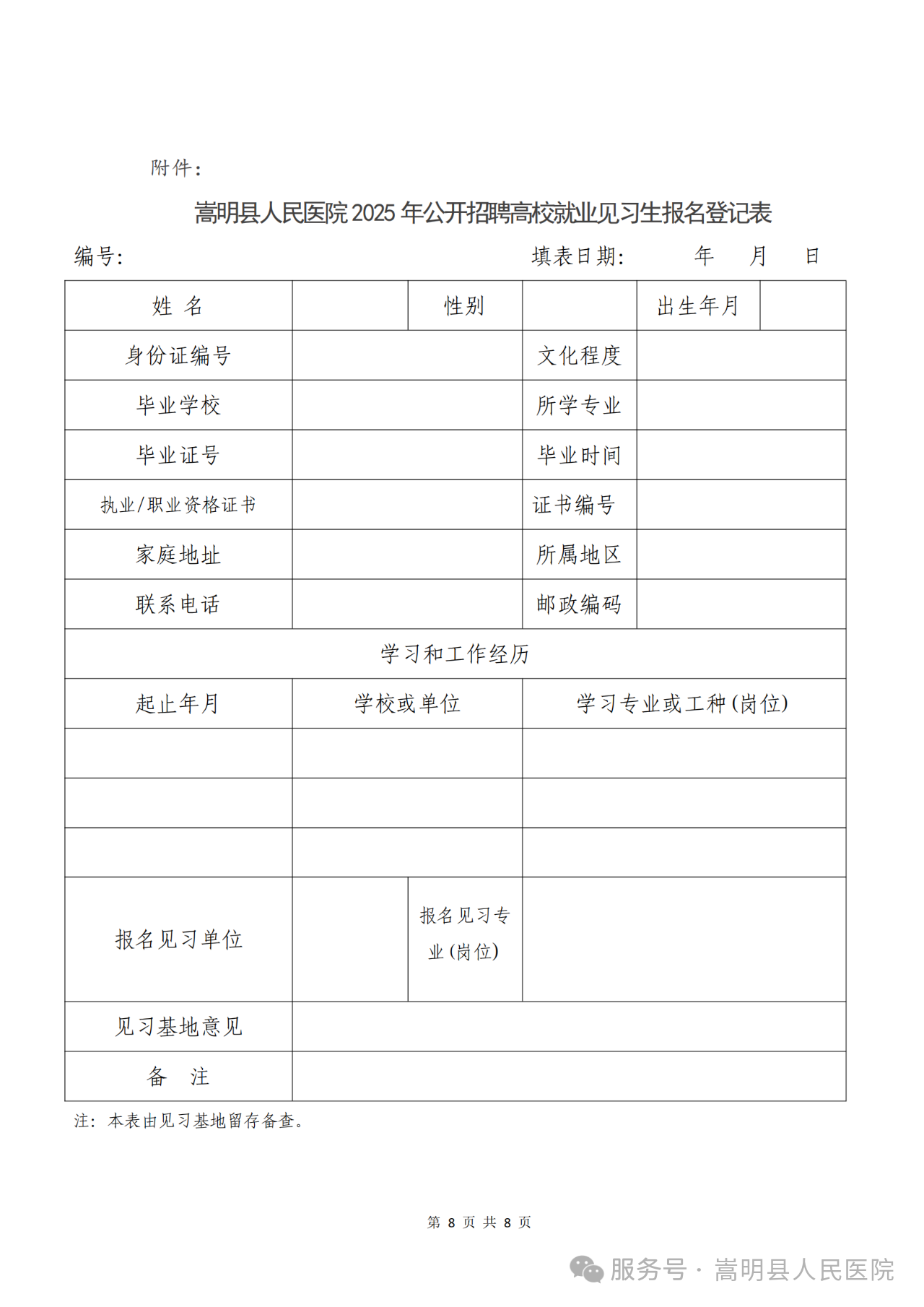 通過網(wǎng)盤分享的文件:嵩明縣人民醫(yī)院2025年公開招聘高校就業(yè)見習生報名登記表