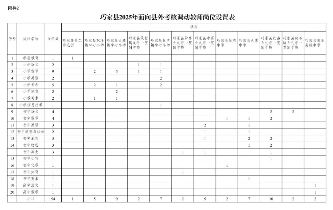 2.巧家縣2025年面向縣外考核調(diào)動教師崗位設(shè)置表