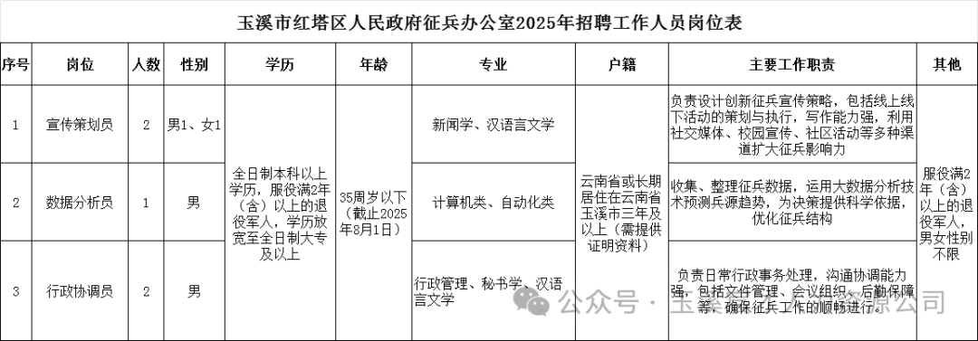 玉溪市紅塔區(qū)人民政府征兵辦公室2025年招聘工作人員公告