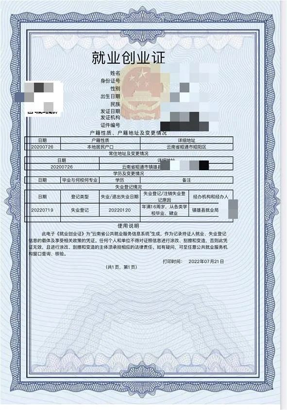 附件2:就業(yè)創(chuàng)業(yè)證示例