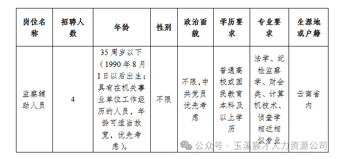 玉溪市紅塔區(qū)監(jiān)察委員會2025年公開招聘監(jiān)察輔助人員公告
