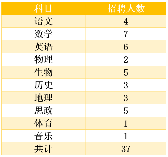 1.初中學段共招37人,詳見下表:
