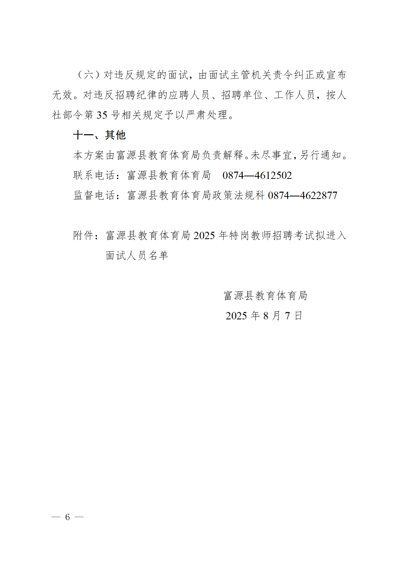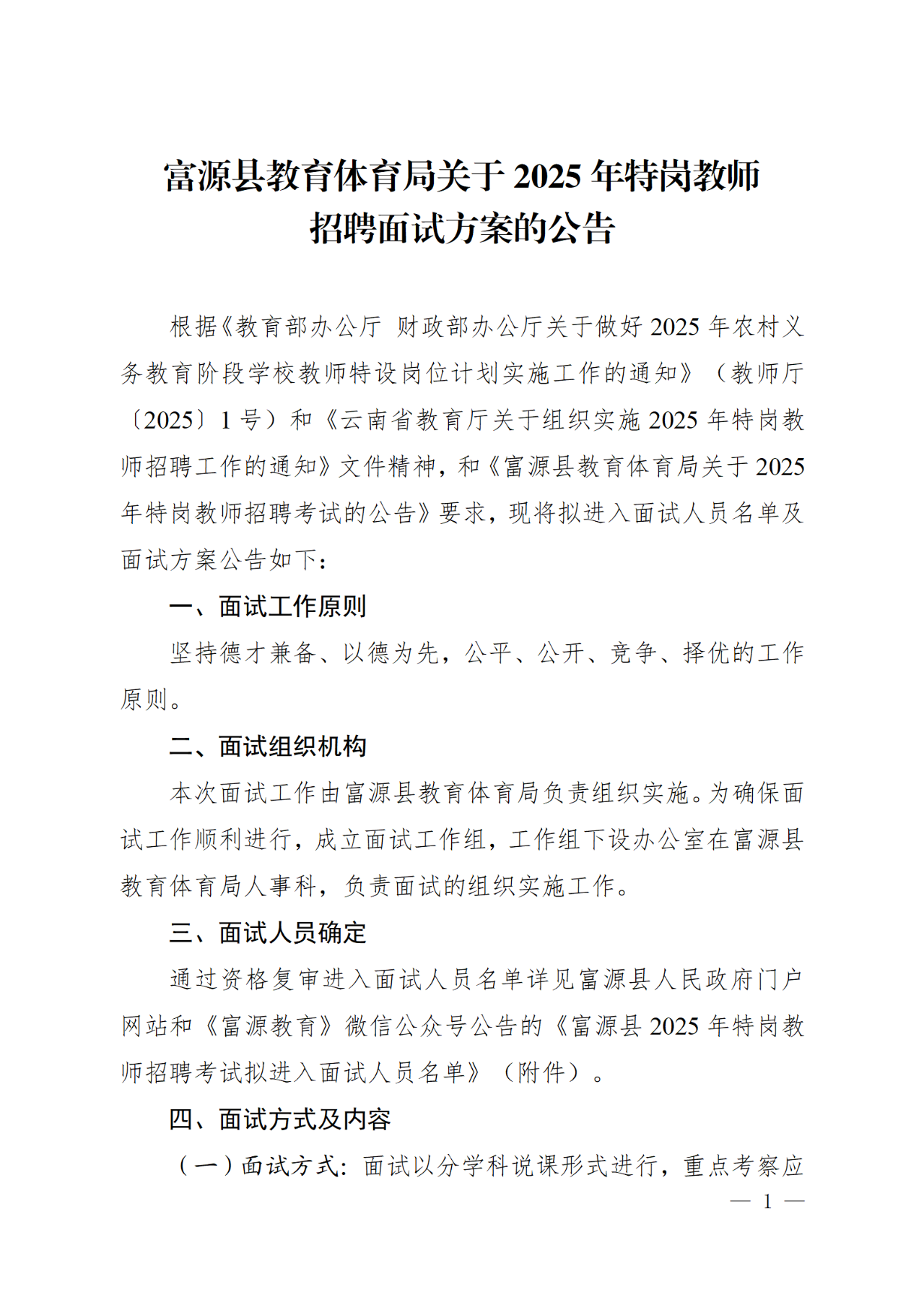 富源縣教育體育局關(guān)于2025年特崗教師招聘面試方案的公告