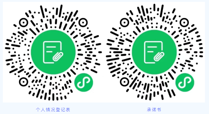 注:分別掃描下方兩個(gè)二維碼下載“個(gè)人情況登記表”及“承諾書”并填寫。