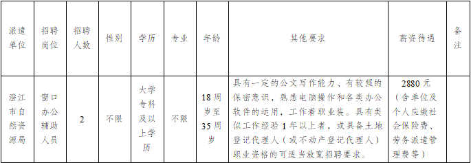 澄江市自然資源局因工作需要,委托澄江市啟澄人力資源有限責任公司,面向社會公開招聘派遣輔助工作人員2名,現(xiàn)將有關事項公告如下: