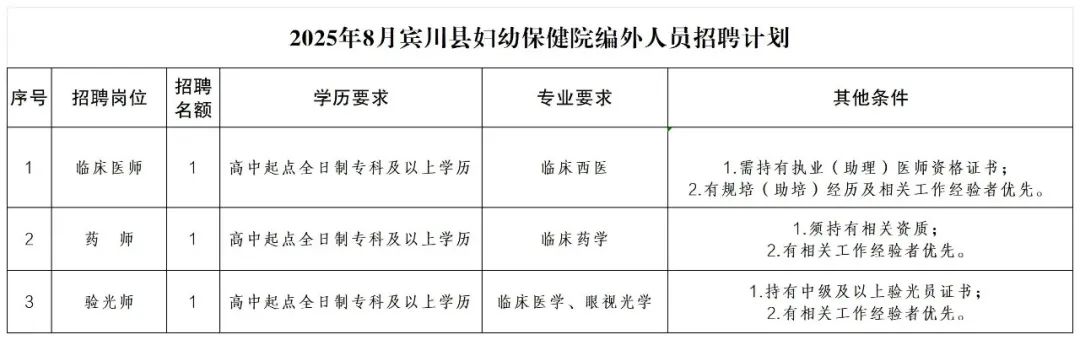賓川縣婦幼保健院2025年面向社會(huì)公開(kāi)招聘編外人員公告