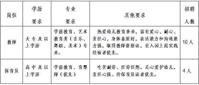 4. 具備良好的品行和職業(yè)道德。吃苦耐勞,關(guān)心愛護幼兒,責(zé)任心強。