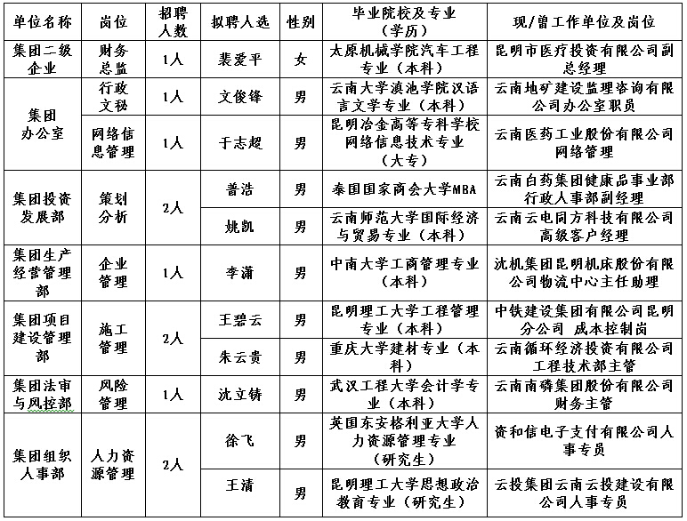 公示期間如有異議,請向云南物流產(chǎn)業(yè)集團組織人事部和紀檢監(jiān)察室反映。公示期間無異議,試用半年。