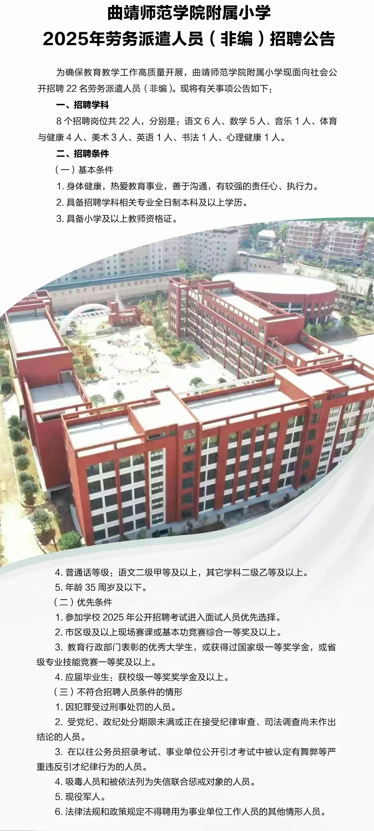 曲靖師范學院附屬小學2025年勞務派遣人員(非編)招聘公告