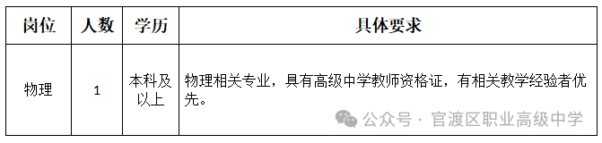 為促進(jìn)昆明市官渡區(qū)職業(yè)高級(jí)中學(xué)發(fā)展,加強(qiáng)學(xué)校師資力量,根據(jù)學(xué)校師資隊(duì)伍建設(shè)規(guī)劃及調(diào)整,現(xiàn)需面向社會(huì)公開(kāi)補(bǔ)加招聘聘用制教師1人?,F(xiàn)將相關(guān)事項(xiàng)公告如下: