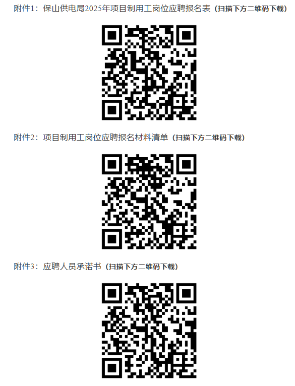 應(yīng)聘人員按照《附件1:保山供電局2025年項(xiàng)目制用工崗位應(yīng)聘報(bào)名表》填寫個(gè)人報(bào)名信息,并根據(jù)《附件2:項(xiàng)目制用工崗位應(yīng)聘報(bào)名材料清單》提供項(xiàng)目報(bào)名材料,簽訂《附件3:應(yīng)聘人員承諾書》。