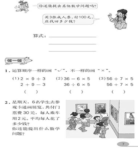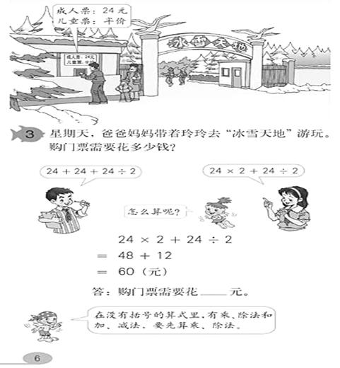 以下是人教版四年級下冊《四則運算》單元的例3: