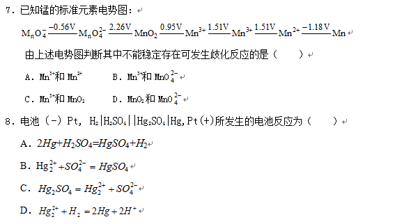 (4)掌握用準標元素電勢圖判斷歧化反應及其反應程度的計算;
