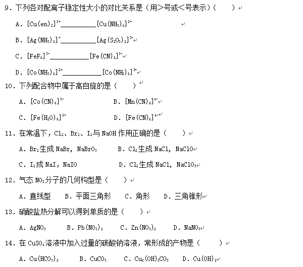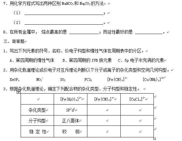(3)掌握常見元素鹵素、氧、硫、氮、磷、碳、硅、硼、鋁、銅、銀、鋅、汞、鉻、錳、鐵、鈷、鎳單質和重要化合物的結構和性質;