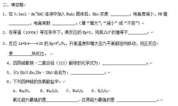 (5)了解化學反應等溫式的意義和用途,會用公式:△Go=–TRlnK 求算反應的△G和K(平衡常數)。