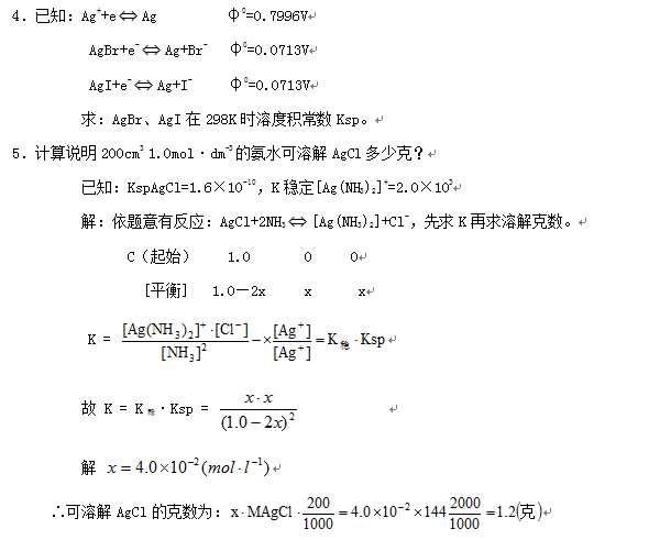 (3)掌握用φ0計算并判斷氧化還原反應方向和程度的方法(用公式lgK= );