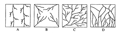 8.在下列各地區(qū)的水系圖中,反映地勢低平的是 ( )