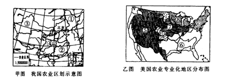 (1)描述甲地農(nóng)業(yè)景觀特點(diǎn)。(3分)