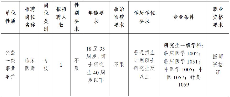 公開招聘普通招生計(jì)劃碩士研究生及以上學(xué)歷人員1名。具體招聘崗位及招聘條件如下: