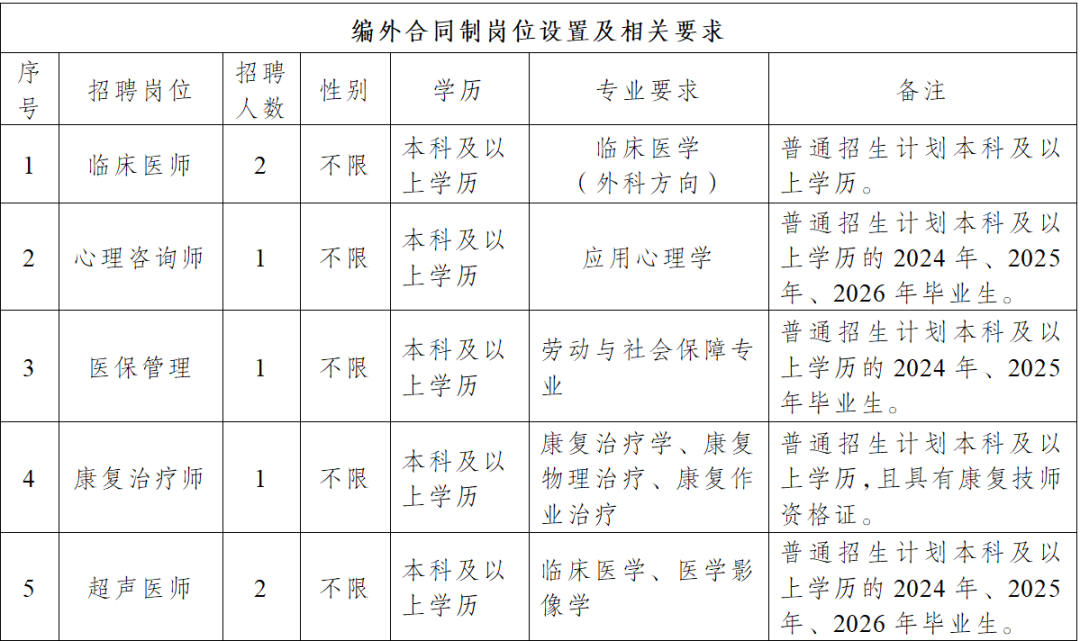 為進(jìn)一步加強(qiáng)芒市人民醫(yī)院人才隊伍建設(shè),提升醫(yī)療服務(wù)水平,根據(jù)醫(yī)院實際崗位用人需求,現(xiàn)面向社會考核招聘編外人員7名,具體事項公告如下: