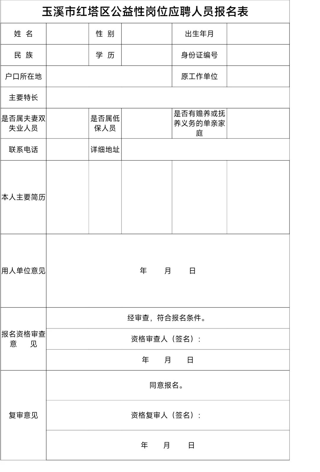 附件:玉溪市紅塔區(qū)公益性崗位應聘人員報名表