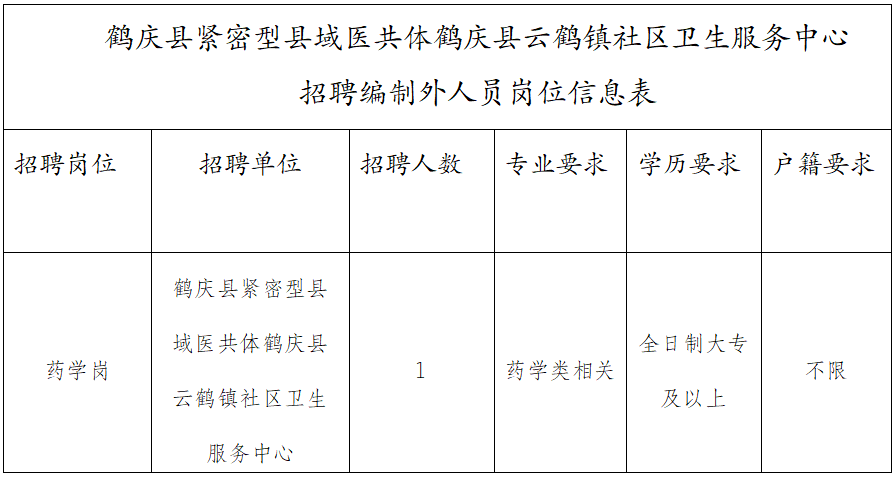 鶴慶縣緊密型縣域醫(yī)共體云鶴鎮(zhèn)社區(qū)衛(wèi)生服務中心公開招聘編外人員公告