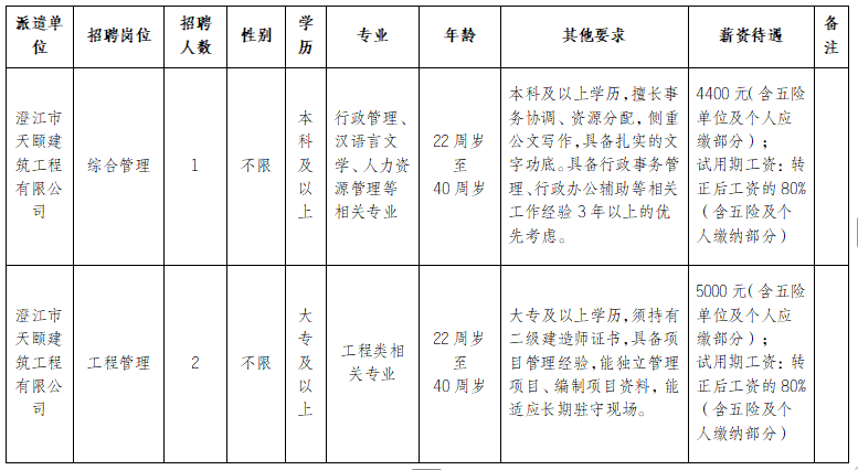 澄江市天頤建筑工程有限公司公開招聘項(xiàng)目用工人員招聘公告