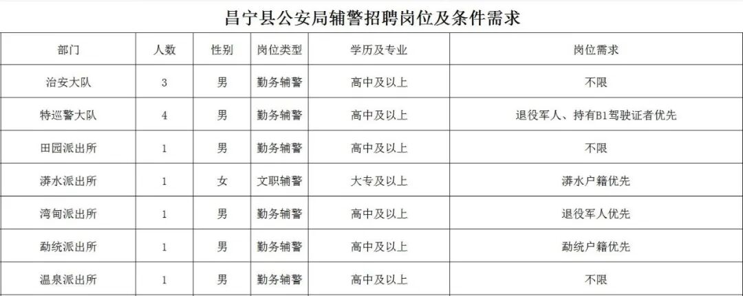 昌寧縣公安局關(guān)于面向社會(huì)公開招聘警務(wù)輔助人員的公告
