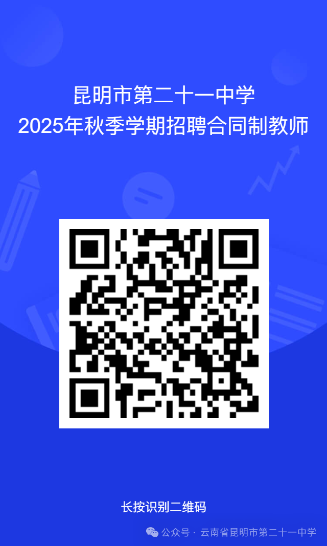 昆明市第二十一中學(xué)2025年秋季學(xué)期招聘編制外合同制教師公告
