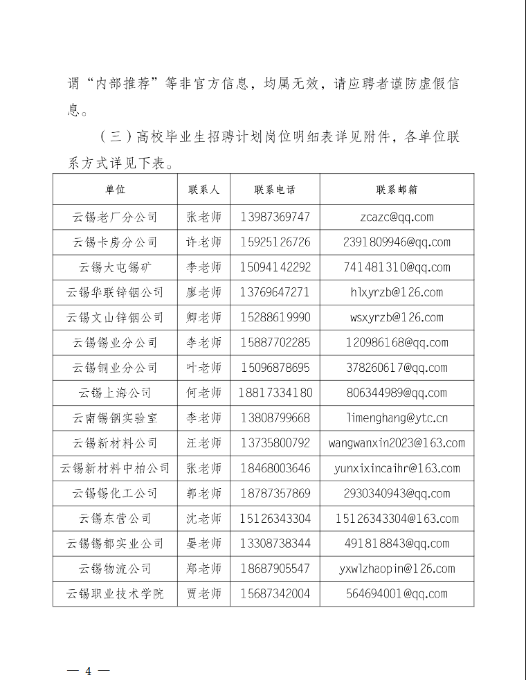 附件【附件:云南錫業(yè)集團(控股)有限責任公司2026年高校畢業(yè)生招聘計劃崗位明細表.pdf】 來源:https://www.ytc.cn/info/1226/15911.htm