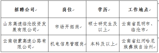 1.招聘崗位及基本條件詳見附件:《山東高速云南發(fā)展有限公司2025年下半年招聘崗位計(jì)劃表》。