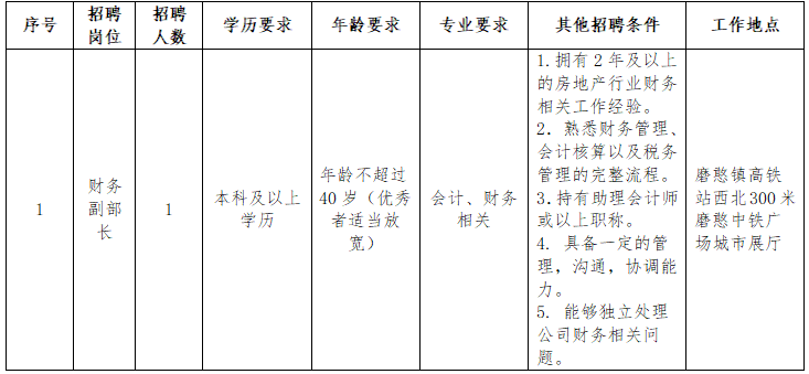 此次面向社會(huì)公開(kāi)招聘財(cái)務(wù)部副部長(zhǎng)1人。
