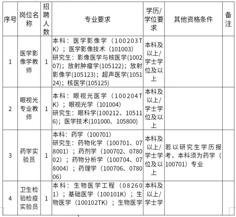 (三)對職業(yè)資格有要求的崗位,上一級資格人員可以報考要求下一級資格崗位,如:取得“執(zhí)業(yè)醫(yī)師資格證”可以報考要求“執(zhí)業(yè)助理醫(yī)師資格證”的崗位。