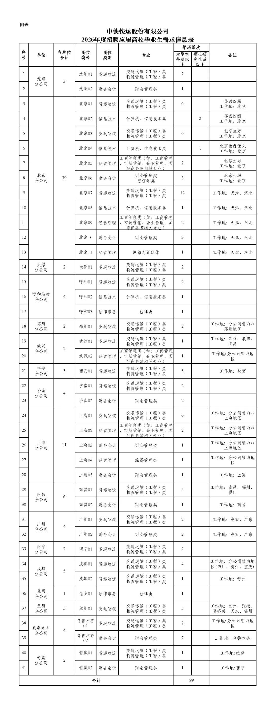 本次共招聘99人,具體崗位及要求詳見附表。