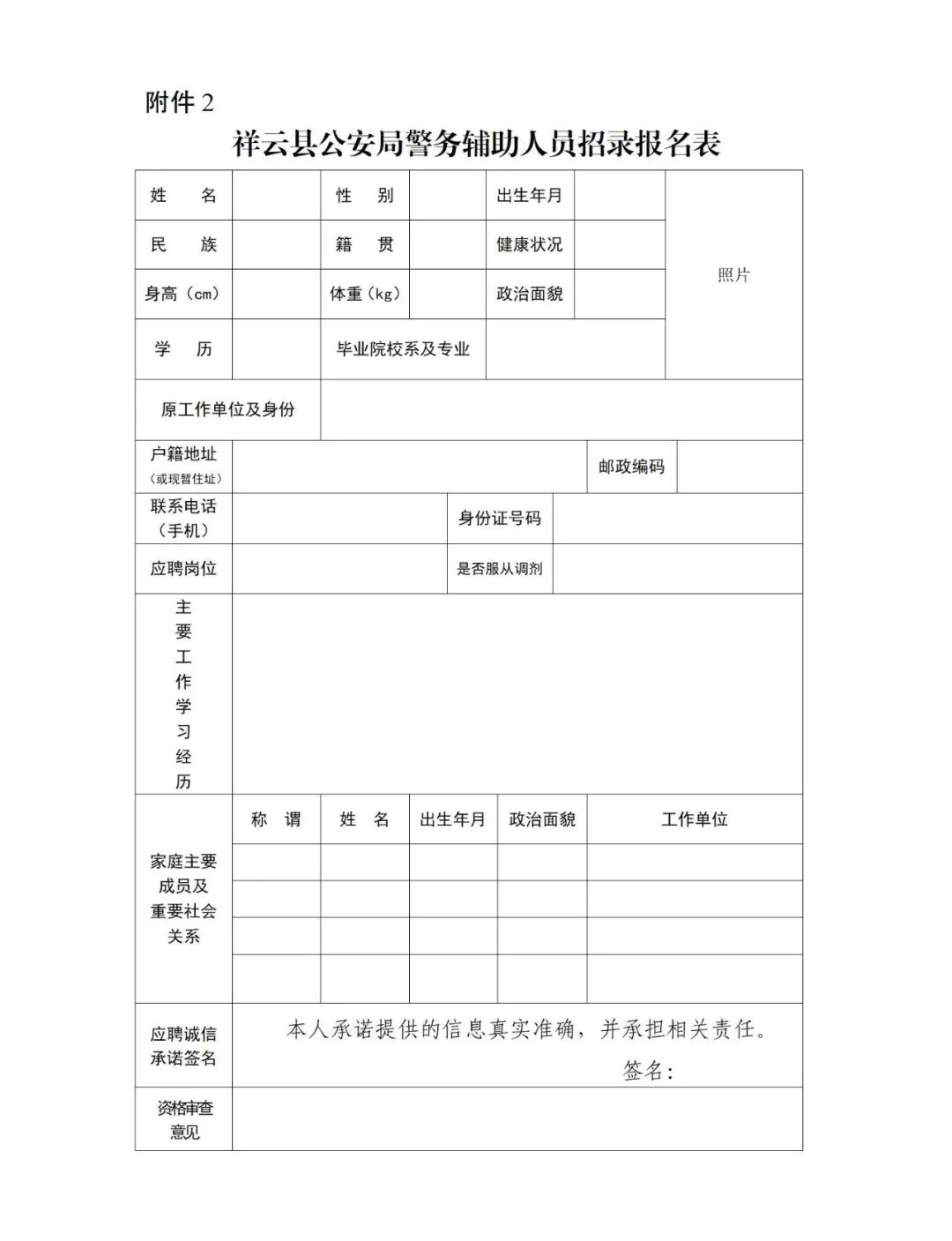2.《祥云縣公安局警務(wù)輔助人員招錄報(bào)名表》