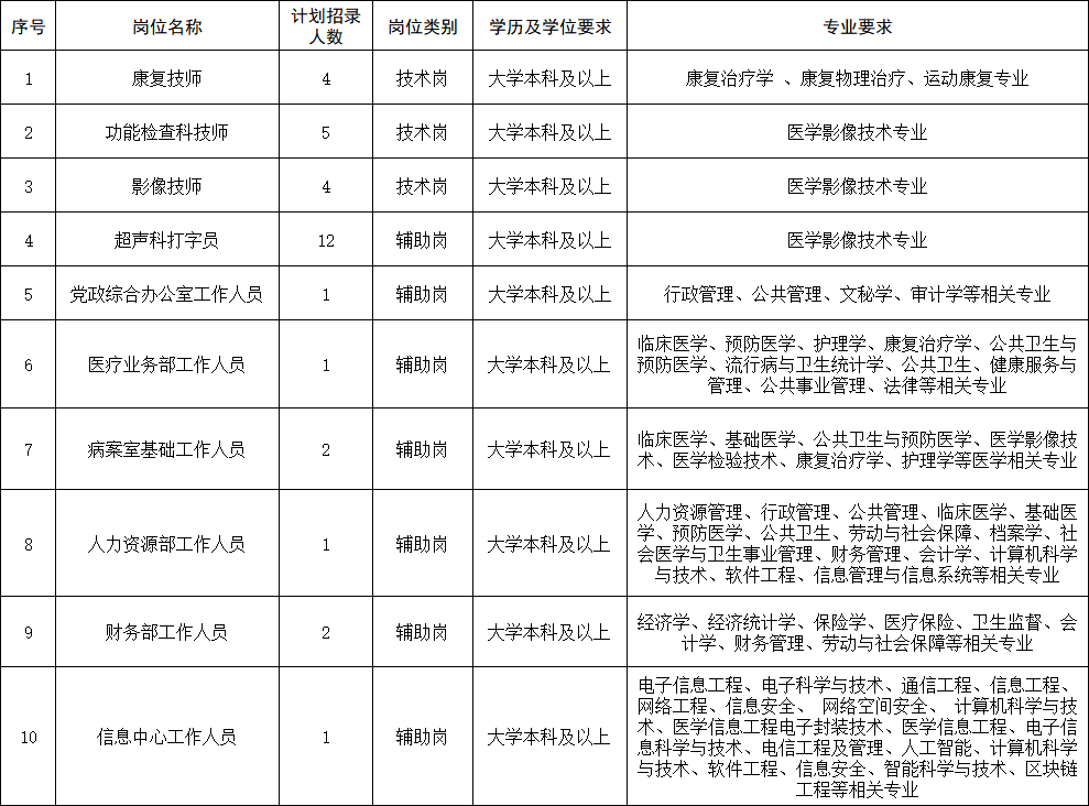 云南省阜外心血管病醫(yī)院(以下簡稱醫(yī)院)是2013年在國家衛(wèi)生健康委主導下,由云南省人民政府與中國醫(yī)學科學院阜外醫(yī)院共建的省級公立三級甲等心血管病??漆t(yī)院,也是全國首批10家“國家區(qū)域醫(yī)療中心”建設樣板單位,中國紅十字會冠名醫(yī)院,昆明醫(yī)科大學附屬心血管病醫(yī)院,是國家心血管病區(qū)域醫(yī)療中心、云南省心血管病臨床醫(yī)學中心所在地,也是京-昆-豫-深“四地阜外”(醫(yī)科院阜外醫(yī)院、云南省阜外心血管病醫(yī)院、阜外華中心血管病醫(yī)院、醫(yī)學科學院阜外醫(yī)院深圳醫(yī)院)重要組成部分。根據(jù)《關(guān)于印發(fā)〈云南省高校畢業(yè)生就業(yè)見習工作實施意見〉的通知》(云人社發(fā)〔2009〕132號)及《昆明市高校畢業(yè)生就業(yè)見習工作實施辦法》(昆人社通〔2017〕59號)要求,結(jié)合醫(yī)院業(yè)務發(fā)展需要,擬招錄就業(yè)見習人員33名,現(xiàn)將相關(guān)招錄事項通知如下: