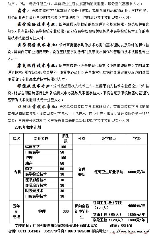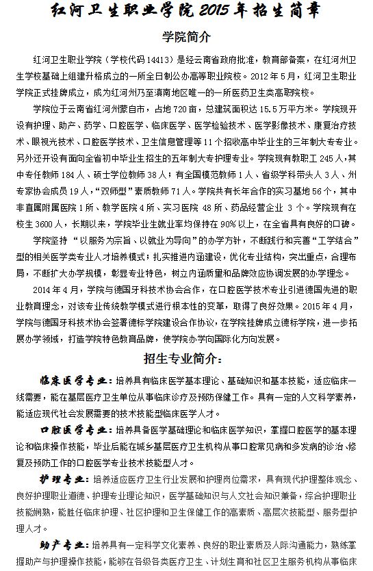 紅河衛(wèi)生職業(yè)學(xué)院2015年招生簡章