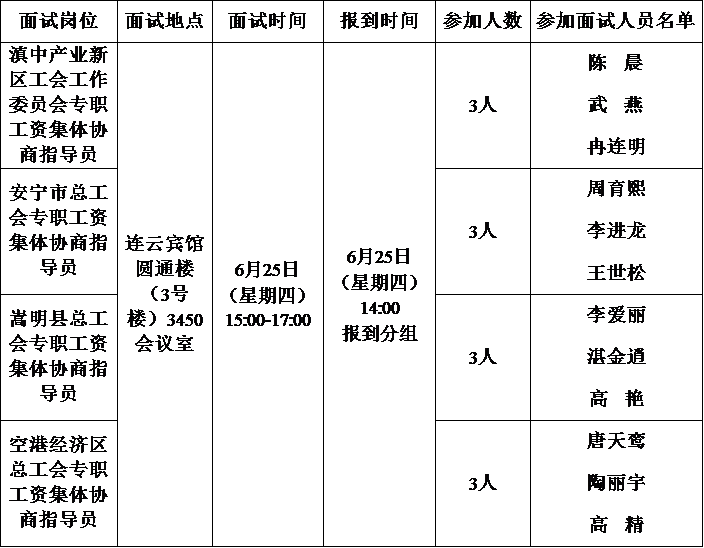根據(jù)《滇中產(chǎn)業(yè)聚集區(qū)(新區(qū))工會工作委員會2015年公開招聘專職工資集體協(xié)商指導(dǎo)員的公告》要求,現(xiàn)將2015年公開招聘專職工資集體協(xié)商指導(dǎo)員筆試成績、面試入圍面單及相關(guān)事項公示如下: