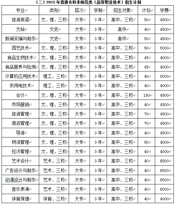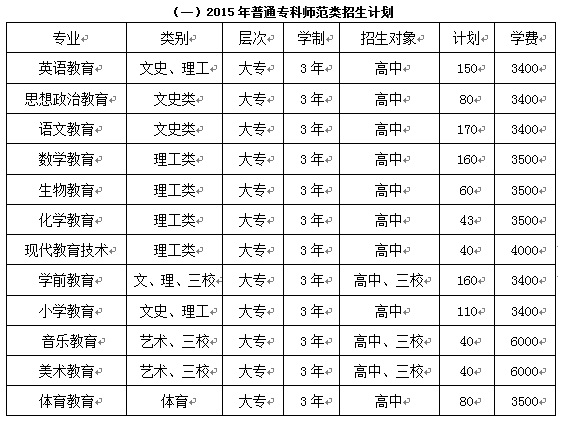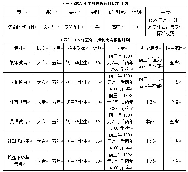 麗江師范高等??茖W(xué)校2015年招生計劃、招生專業(yè)和收費標準