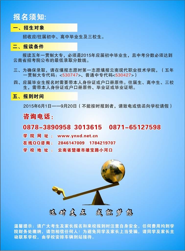 云南現(xiàn)代職業(yè)技術(shù)學(xué)院2015年招生簡章