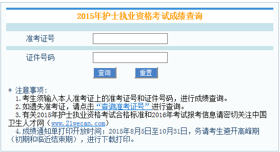 2015年全國護士執(zhí)業(yè)資格考試查分入口