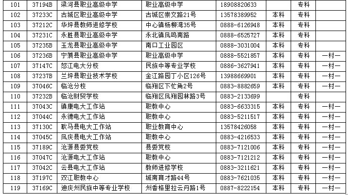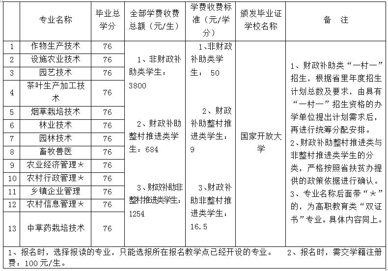 一村一名大學(xué)生計(jì)劃”專科專業(yè)13個(gè)